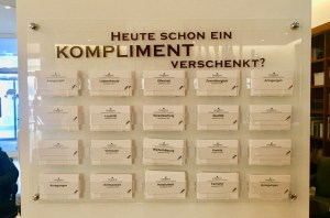 Noch eine letzten Frage: Hier in der Lobby hängt eine Tafel mit vielen kleinen Kärtchen, auf denen Begriffe stehen wie „Lebensfreude“, „Wertschätzung“ oder „Achtsamkeit“ – was hat es damit auf sich?