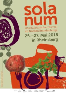 Zum zweiten Mal fand vom 25.-27. Mai das kulinarische Festival „Solanum“ in Rheinsberg im Norden Brandenburgs statt. „Unser Festival möchte Appetit machen auf eine Symbiose aus Stadt und Land“, sagt Organisatorin Kathrin Wagner. Dazu fanden zahlreiche Veranstaltungen statt wie ein interaktives Abendbrot, die Outdoor-Kochbox, eine kulinarische Schatzsuche mit Gewürzquiz, ein Gemüsekonzert und der Solanum-Markt der Köstlichkeiten, auf dem regionale Erzeuger ihre Produkte vorstellen. Gastronomisch begleitet wird das Festival von vier Restaurants, die sieben Tage lang ein Solanum-Menü anbieten, bei dem Nachtschattengewächse im Mittelpunkt stehen: Bereits 2016 waren die Restaurants „Zum Alten Fritz“ und der „Seehof Rheinsberg“ Teil des Festivals. Der Name des Festivals leitet sich von Nachschattengewächsen wie der Kartoffel (solanum tuberosum) ab. Die Kartoffel steht wie kaum ein anderes Gewächs für Brandenburg resp. Preußen, schließlich war es Friedrich II., der per Dekret den Anbau des Erdapfels in der preußischen Provinz Brandenburg anordnete und dadurch sein Volk vor Hungersnöten bewahrte. Friedrich II verbrachte seine Jugendjahre in Rheinsberg, in seinem Schloss und dem weitläufigen Garten finden einige der Veranstaltungen statt.