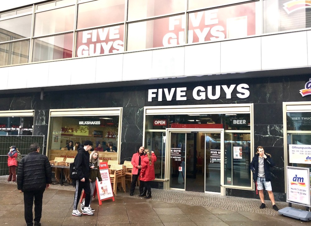 1,8 Mio. Euro hat Jörg Gilcher, Chef von Five Guys in Deutschland, in die 500qm große Filiale investiert und 70 Arbeitsplätze geschaffen. Die Stimmung ist wie immer ausgelassen: Laute Rockmusik tönt durch den Raum, Dutzende Servicemitarbeiter wuseln vor und hinter dem Tresen und alle paar Minuten werden abholbereite Menüs ausgerufen. Der Laden hat erst vor einer Woche eröffnet und platzt schon aus allen Nähten. So ergeht es Five Guys bei jeder Neueröffnung: Die deutschen Kunden scheinen geradezu auf die Fastfood-Kette gewartet zu haben!