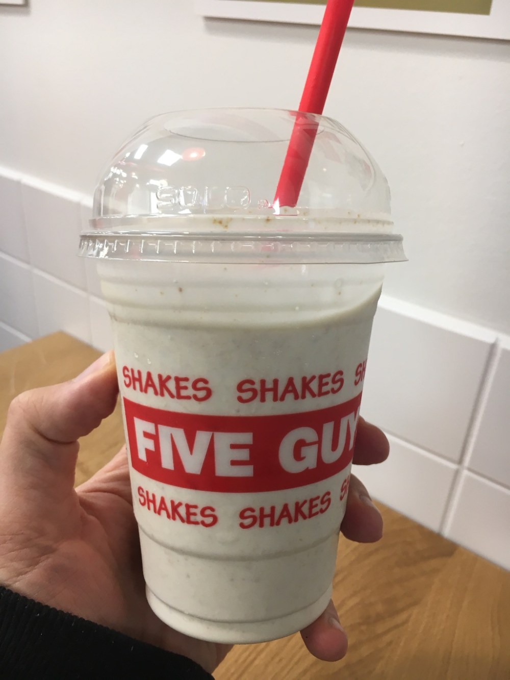 Wer wenig Zeit hat, kann seinen Burger in der Five Guys-App zusammenstellen und und kurze Zeit später in der Filiale abholen. Zu trinken gibt es den populären Five Guys-Milchshake – aktuell mit Lebkuchengeschmack, der wirklich klasse nach Spekulatius schmeckt. Oder man mischt sich einen Softdrink an einem der beiden Freestyle-Automaten von Coca Cola: 100 verschiedene Kombinationen aus allen Coke-Marken sind möglich, inklusive Powerade, Kinley oder FuseTea. Mein Mix aus Powerade Himbeer mit Sprite Zero Vanille war bekömmlicher aus erwartet.
