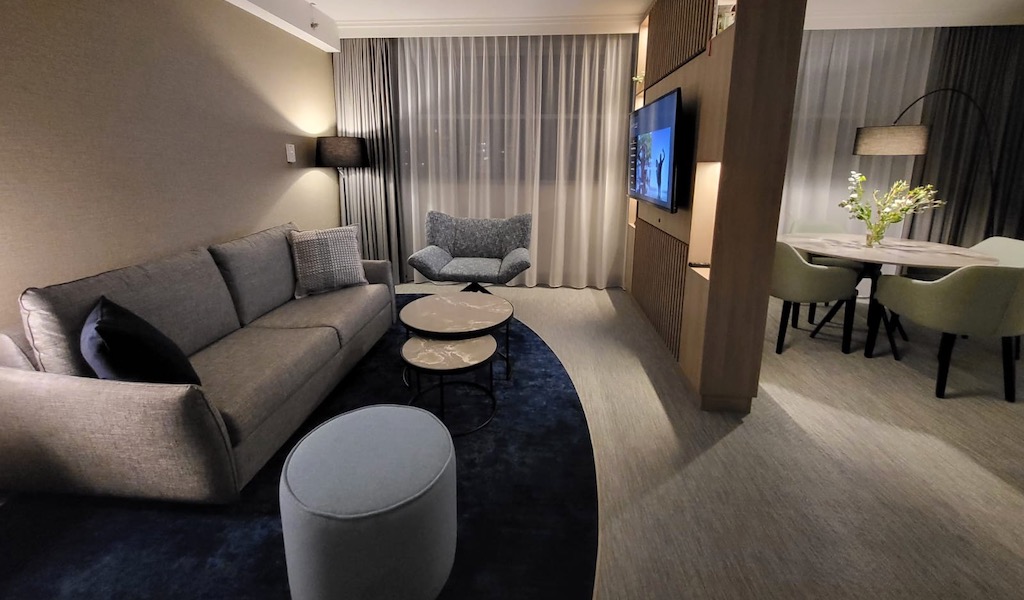 Ein weiteres Highlight der Renovierung ist die eindrucksvolle neue Lobby. Die Lobby wurde komplett neu gestaltet, um den Gästen einen modernen und einladenden Empfangsbereich zu bieten. Große, offene Räume, zeitgemäßes Design und komfortable Sitzgelegenheiten schaffen eine einladende Atmosphäre, in der sich die Gäste entspannen und verweilen können. Die neue Lobby dient auch als Treffpunkt für Geschäftsreisende und bietet moderne Arbeitsbereiche sowie WLAN-Zugang für alle Gäste.